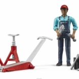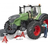 Il set include la figurina del meccanico con arti mobili e accessori da officina (martello, cacciavite, cric e altro), grazie ai quali è possibile simulare riparazioni e assistenza del trattore. Il modello è realizzato in resistente plastica ABS e policarbonato, garantendo lunga durata anche con uso intensivo.