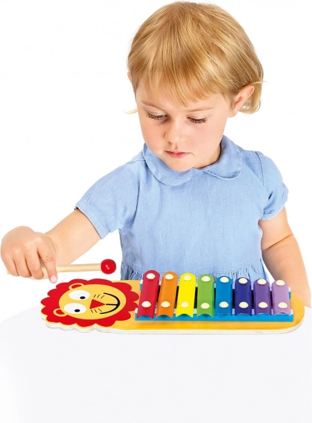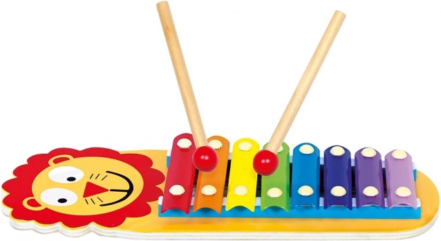 - Xilofono a forma di leoncino, 2 bacchette in legno (set da 3 pezzi)