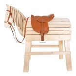 Regalate ai bambini l’esperienza dell’equitazione con un set di sella e briglia che trasforma ogni cavallo di legno o a dondolo in un compagno pronto per le passeggiate. La sella in materiale resistente ha una piacevole imbottitura morbida per una seduta confortevole e staffe in metallo con staffili regolabili, in modo che i bambini trovino facilmente la lunghezza giusta.