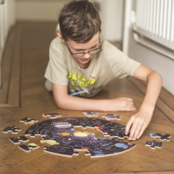 Immergiti nel mondo dello spazio con il nostro puzzle tondo da pavimento che rappresenta il sistema solare. Questo magnifico prodotto è stato creato non solo per il divertimento, ma anche per l'educazione. Unisci tutti i pezzi insieme e crea una scena mozzafiato a 360 gradi piena di pianeti e stelle.