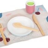 Il set da pranzo per bambini Tasty di Small Foot porta nella tua casa un design moderno che combina legno naturale con colori blu fumo e rosso bacca. Questo set include piatti, tazze, posate e tovagliette per due persone, ideale per i piccoli chef che vogliono imparare una corretta etichetta a tavola.