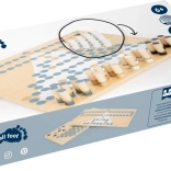 La plancia di gioco bifacciale è composta da due parti che restano saldamente unite grazie ai magneti. Le pedine in legno di qualità offrono un’ottima presa e il box in cartone resistente consente un facile riponimento e il trasporto. Il gioco è ideale per famiglie e amici, e favorisce logica, pianificazione delle mosse e pazienza.
