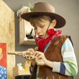 Oltre alla pistola, la confezione include cinque figure di legno che servono come bersagli. Sono inclusi anche proiettili di gomma che la pistola può sparare a una distanza di fino a cinque metri. Questo modello offre non solo divertimento, ma può anche fungere da elemento decorativo sulla tua scrivania o mensole.