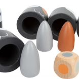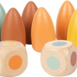 Questo gioco di memoria in legno si basa su regole semplici: si lancia il dado e, in base al colore uscito, si cerca la tessera corrispondente. Grazie all'alternanza dei colori e alle posizioni nascoste, i bambini rafforzano in modo giocoso la memoria a breve termine, l'attenzione e la coordinazione occhio–mano. Il gioco è rapido, chiaro e funziona benissimo anche in sessioni di gioco brevi.