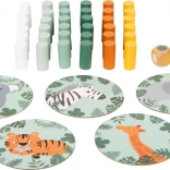 Divertente gioco di equilibrio in legno ispirato a Jenga: torre traballante SMALL FOOT SAFARI con dado colorato che indica quale pezzo estrarre. Sviluppa destrezza, equilibrio, concentrazione e pazienza e, grazie ai graziosi motivi safari in colori moderni, piacerà a tutta la famiglia.