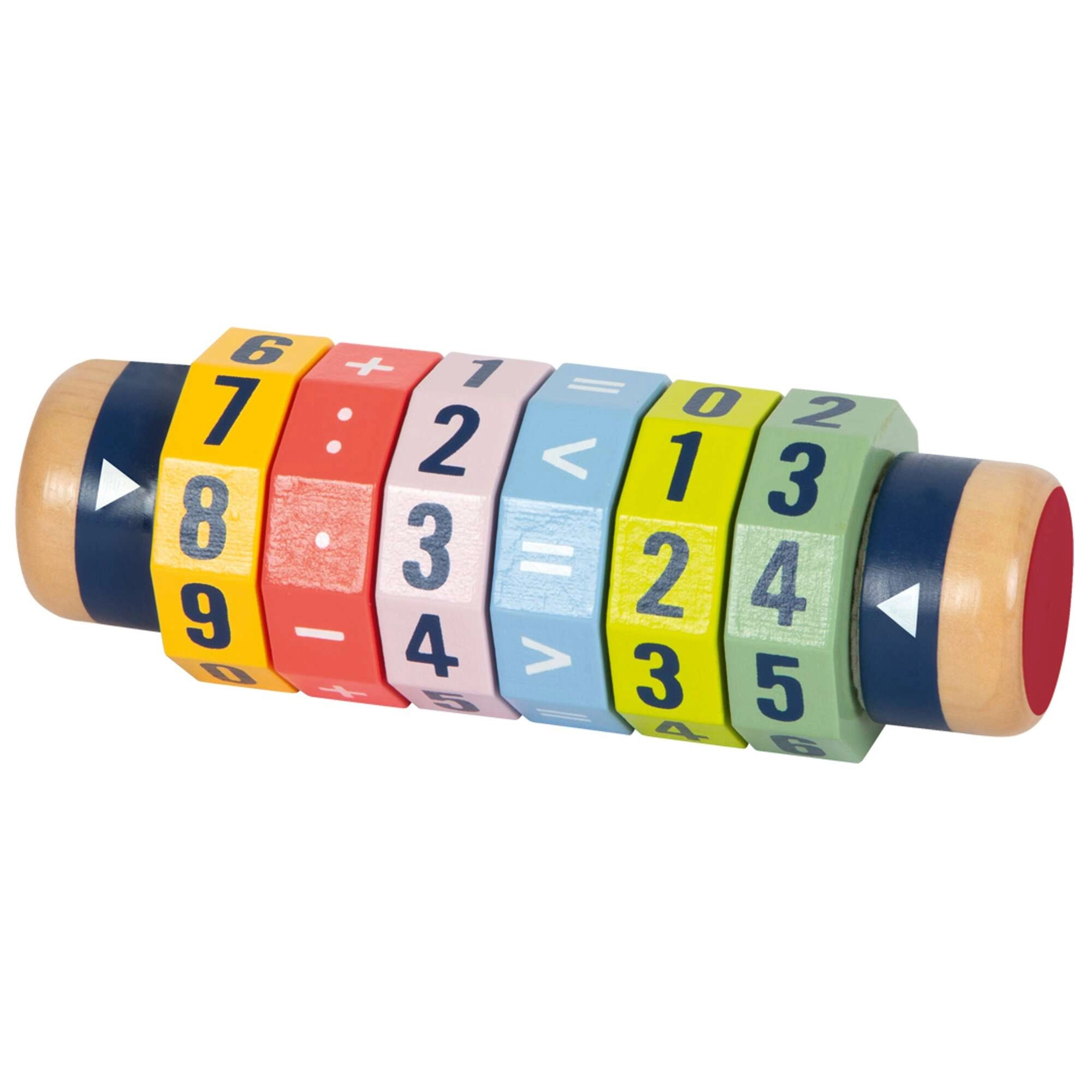 Scoprite un modo divertente per avvicinarsi alla matematica. Il cilindro in legno con sei anelli girevoli consente ai bambini di creare equazioni semplici e più complesse e di confrontare i numeri. Grazie ai colori vivaci e alle cifre ben visibili, i bambini imparano giocando e sviluppano motricità fine e concentrazione.