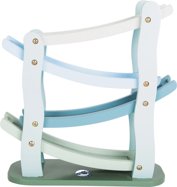 La pista a cascata in legno SMALL FOOT Blue è un’ottima compagna per bambini dai 18 mesi. Le macchinine partono dal piano superiore e sfrecciano lungo le rampe inclinate fino in basso, ribaltandosi in modo spettacolare – tutto ciò favorisce concentrazione, pazienza e la gioia di scoprire cause ed effetti.