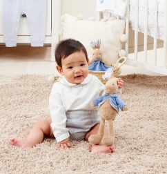 Il coniglietto Pietro indossa la sua caratteristica giacca blu, rendendolo un giocattolo immediatamente riconoscibile che i bambini adorano.