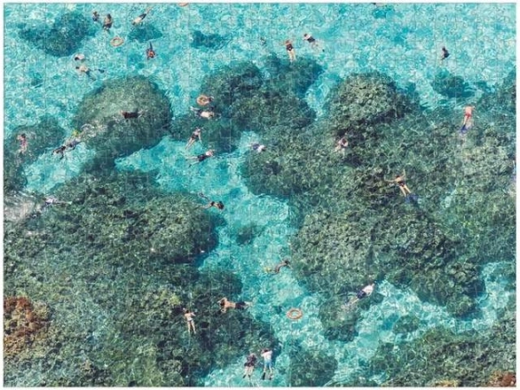 Lo stile dei puzzle bifacciali ispirati alle iconiche fotografie aeree di Gray Malin offre una sfida accattivante e al contempo un risultato decorativo. Un lato ritrae una spiaggia animata dalla prospettiva a volo d’uccello, l’altro la calma superficie dell’oceano con scogli e bagnanti. Grazie alle diverse finiture (lucida/opaca) riconosci facilmente quale lato stai componendo.