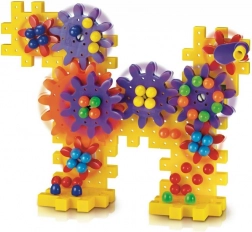 Il Quercetti Georello kit di costruzione base è progettato in modo che i bambini possano creare e giocare mentre apprendono in modo non violento e sviluppano la loro immaginazione e abilità motorie. Ogni set include tavole perforate, assi, ruote dentate, figure di animali domestici o selvatici e alberi. Usando la manovella, l'intero meccanismo può essere messo in movimento, aggiungendo dinamismo al gioco che i bambini adorano.