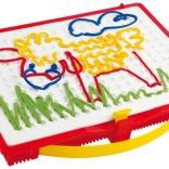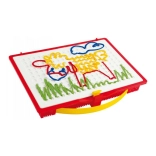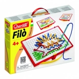 Scopri la magia del gioco creativo con il set di ricamo Quercetti Filò, che supporta la fantasia dei bambini e la motricità fine. Con penne speciali, i bambini possono creare diverse immagini inserendo fili colorati nei fori della tavola da gioco, portando loro gioia e divertimento.