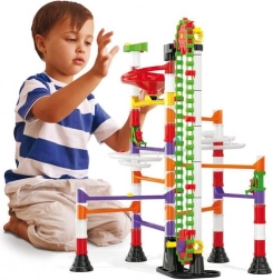 Con il set QUERCETTI Migoga Elevator i bambini possono costruire modelli seguendo le immagini sulla scatola oppure sperimentare liberamente con le proprie idee. Grazie ai pezzi tra loro compatibili nascono combinazioni infinite di piste con la pendenza perfetta per un movimento fluido delle biglie. L’ascensore verticale a catena riporta le biglie alla partenza e garantisce una corsa senza interruzioni.
