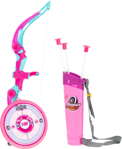 Set di tiro con l’arco rosa per bambini che offre un gioco sicuro e divertente in casa e all’aperto. L’arco leggero in plastica con tensione in gomma e frecce con ventosa è ideale per allenare la mira, migliorando coordinazione, prontezza e precisione. Inclusi bersaglio, faretra e 3 frecce, così i bambini possono subito organizzare divertenti gare di tiro.