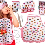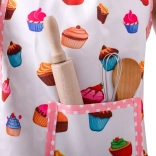 L'outfit da cucina con motivo cupcake porta un'atmosfera allegra e creativa alla preparazione quotidiana.