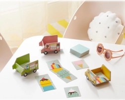 Divertiti con il gioco del gelato, in cui l'obiettivo è raccogliere il maggior numero di palline e creare il cono perfetto. Il gioco supporta la memoria ed è realizzato con materiali ecologici, inclusi il 50% di carta riciclata.