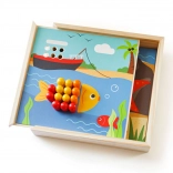 Scopri un divertente mosaico a tema spiaggia che stimola l'immaginazione e le abilità dei bambini. Include 4 immagini e 96 piolini in 8 colori, che i bambini inseriscono sul coperchio della pratica scatola. Il gioco favorisce il riconoscimento dei colori, la motricità fine, la concentrazione e il pensiero logico. Realizzato in legno di alta qualità, proveniente da fonti responsabili – piacevole al tatto e ideale per i viaggi.