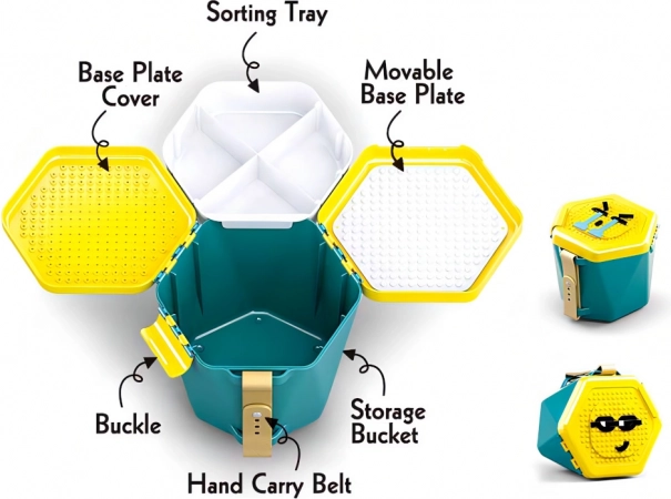 - Secchio pratico – il coperchio funge da base di costruzione e all'interno è presente un vano per un'organizzazione ordinata dei pezzi.