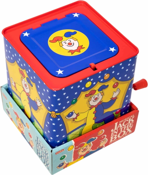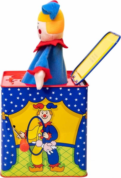 Questo carillon musicale con arlecchino attira l'attenzione con la sua grafica circense e la costruzione robusta, che promette un divertimento duraturo. Girando la manovella si sentirà la melodia, che farà sorridere ogni bambino.