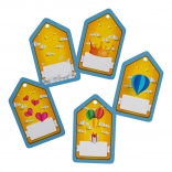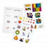 Tre fogli di adesivi e cinque etichette scrivibili donano al regalo un tocco personale: dai complimenti ai messaggi romantici.
