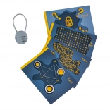 Nella confezione trovi tutto il necessario: scatola, lucchetto, 4 carte indizio, 3 fogli di adesivi decorativi e 5 etichette scrivibili per la personalizzazione. Il vano interno di 11,5 × 11,5 × 10,5 cm ospita un piccolo regalo, un buono o un messaggio personale. Prodotto nell’UE e corredato da istruzioni illustrate in inglese e tedesco.