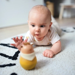 Gioco interattivo con campanellino interno che stimola la percezione uditiva ad ogni movimento. Il meccanismo auto-raddrizzante sviluppa le abilità motorie.