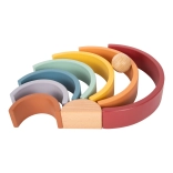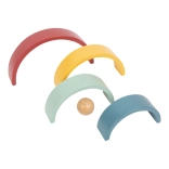 Questo arcobaleno di legno offre un'ottima opportunità per i bambini di sviluppare la loro immaginazione e le abilità motorie. Include 8 archi colorati e una pallina di legno che può servire come strumento didattico per comprendere le dimensioni e i colori. Il giocattolo è realizzato in accordo con la pedagogia Montessori ed è ideale per il gioco libero.