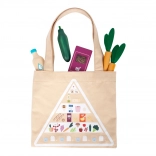 Grazie alla borsa in cotone con stampa della piramide alimentare, i bambini imparano in modo giocoso la corretta alimentazione, l’ecologia e gli acquisti responsabili. La lavorazione resistente in legno e tessuto è piacevole al tatto e ideale per le cucine dei bambini e i banchetti del negozio. Il set è compatibile con altri prodotti della linea “Fresh”.