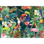 La giungla colorata con uccelli e piante tropicali ravviva la tua esperienza di assemblaggio e ti trasporta nel cuore della foresta pluviale.