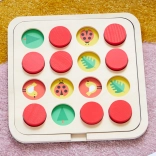 La plancia di gioco con 16 dischi coprenti è pensata per piccoli giocatori dai 3 anni. Supporta lo sviluppo delle abilità cognitive, il riconoscimento di forme e colori, oltre ad allenare pazienza e concentrazione. Le illustrazioni sono vivaci, giocose e di facile lettura.