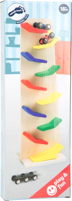 La torre a cascata in legno small foot farà felici i piccoli fan delle auto. Una volta rilasciata, la macchinina sfreccia lungo le rampe verso il basso creando il divertente effetto “clap clap” per occhi e orecchie. Sviluppa la motricità fine, è robusta e resistente e si adatta perfettamente anche alle scuole dell’infanzia.