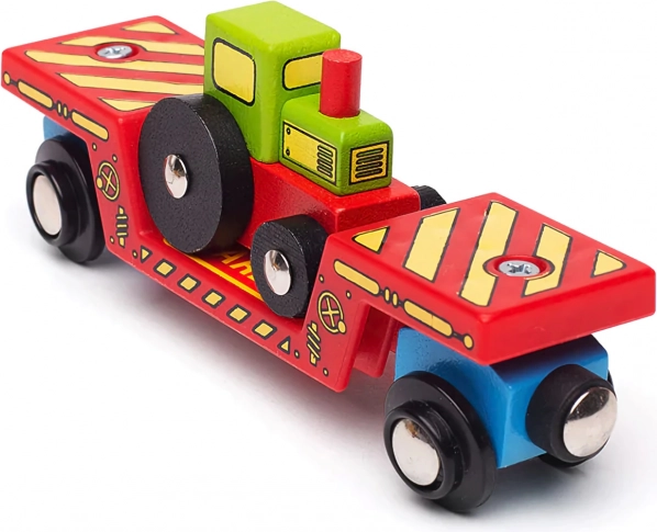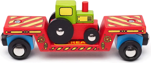 Arricchisci la ferrovia di legno con un robusto vagone con trattore e due binari di Bigjigs Rail. Il set offre un doppio utilizzo: i bambini possono giocare con il trattore separatamente oppure caricarlo e trasportarlo sul vagone pesante. I ganci magnetici garantiscono un collegamento facile con altri convogli, mentre la compatibilità con la maggior parte dei binari in legno sul mercato assicura ampie possibilità di espansione.