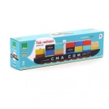 Questa elegante nave portacontainer in legno offre un gioco realistico con container su pioli, che si possono assemblare, ordinare e spostare liberamente. I bambini esercitano la coordinazione occhio–mano e apprendono le basi di logistica e classificazione di colori e forme.