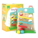 La casetta a cascata in legno VILAC entusiasmerà i più piccoli con la divertente corsa delle palline e il design accattivante. Offre 3 rampe su entrambi i lati, lungo le quali le palline di legno rotolano dall’alto verso il basso e, all’arrivo, suonano un campanellino in metallo. Il giocattolo, dalle colorazioni pastello, sviluppa destrezza e pensiero logico e garantisce ore di gioco gioioso.