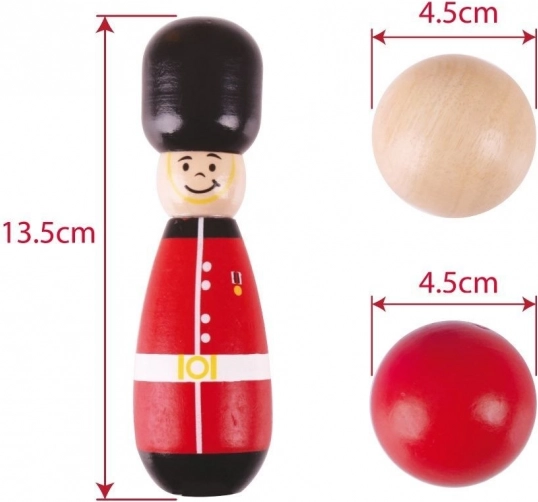 Lasciati incantare dal fascino dei vivaci birilli in legno Inglesi Guardie di Bigjigs Toys! Questo gioco intramontabile offre ore di divertimento sia per i bambini che per gli adulti ed è ideale per giocare sia all'interno che all'esterno.< /div>