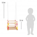 Questa altalena in legno SMALL FOOT è progettata per un’oscillazione comoda e sicura dei bambini più piccoli. La protezione offre supporto sia nella seduta che nella presa, le corde robuste con occhielli metallici consentono la regolazione rapida della lunghezza e gli anelli resistenti garantiscono un fissaggio semplice. Il legno massello lavorato con precisione conferisce all’altalena lunga durata e un aspetto naturale.