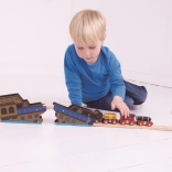 Il ponte si integra facilmente con la maggior parte dei binari standard in legno. Amplia la tua pista senza complicate modifiche e combinandola con i set preferiti.