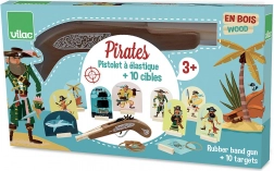 Pistola pirata di legno del marchio Vilac è un giocattolo ideale per piccoli appassionati di avventure piratesche. Permette ai bambini di allenare la mira con elastici sicuri, che sono inclusi nella confezione.