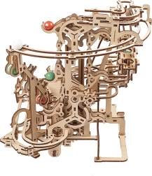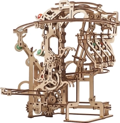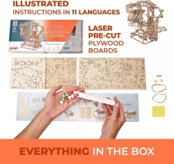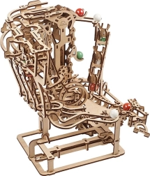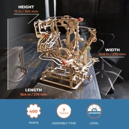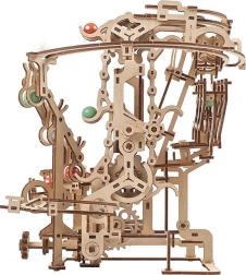 Questa sofisticata pista a biglie in compensato di qualità offre una combinazione di piacere modellistico, valore educativo e spettacolo rilassante. L’ascensore a catena azionato a mano trasporta le biglie con fluidità alla partenza, da cui si avviano su tre sezioni indipendenti, ciascuna con un’ostacolo principale unico. Il design aperto mette in risalto la meccanica funzionale e i dettagli raffinati.