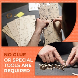Il montaggio è preciso e divertente grazie a 400 pezzi tagliati con precisione e a un manuale dettagliato. Il modello offre la possibilità di connessione modulare: unite da due a quattro piste e create un sistema meccanico sincronizzato ricco di dinamismo e competizione con gli amici.