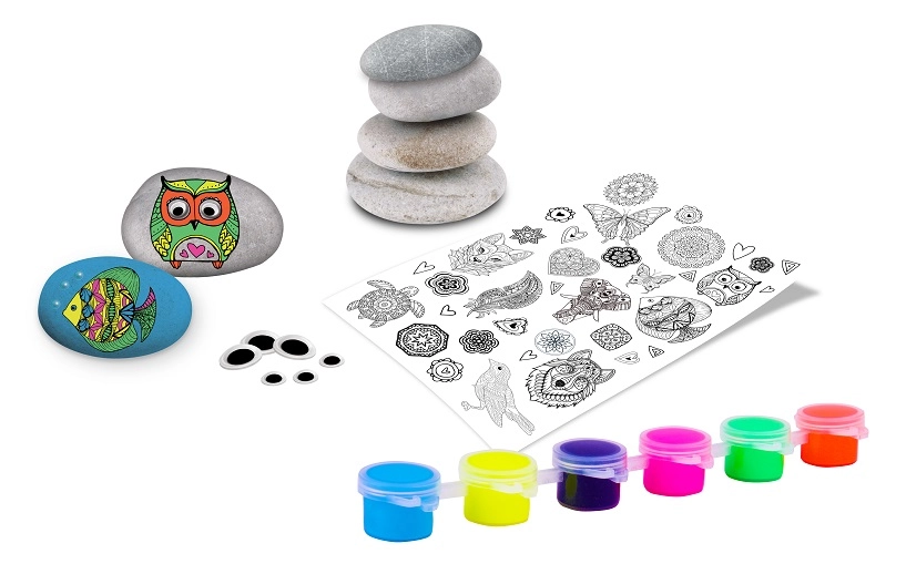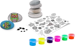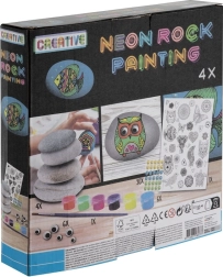 Scopri il divertimento e la creatività con questo set neon per dipingere sassolini. La confezione include 4 pietre lisce, 6 colori acrilici neon, un pennello, uno stecchino di legno, adesivi transfer e occhi con perline autoadesive per decorazioni d’effetto. Attività creativa ideale per bambini da 8 anni e adulti.