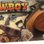 Entra nel mondo del selvaggio West con il nostro set da cowboy, che include un cappello, un fondina in pelle per revolver, un foulard, manette, una stella da sceriffo e un revolver argentato riccamente inciso. Ideale per giochi di ruolo o costumi.