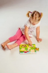 Il puzzle in legno Fattoria è lo strumento perfetto per sviluppare la creatività e l'attenzione dei tuoi bambini. Grazie ai molti colori e ai motivi degli animali, attrae l'attenzione dei piccoli e li incoraggia a esplorare il mondo degli animali da fattoria. Inoltre, il giocattolo supporta lo sviluppo cognitivo e la coordinazione mano-occhio.