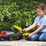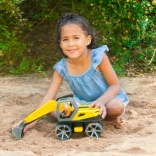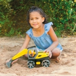 Il braccio con pala si controlla con una comoda maniglia, così i bambini possono davvero caricare e spostare la sabbia come un vero escavatore.