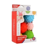 Ogni pallina fischia quando viene premuta, motivando i bambini al gioco, rafforzando la presa e sviluppando la percezione uditiva.