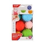 Questo versatile set di palline sensoriche è una scelta eccellente per neonati e bambini piccoli fin dalla prima età. Grazie a superfici, colori e dimensioni diverse, i bambini esplorano naturalmente il mondo attraverso il tatto e migliorano la coordinazione occhio-mano. Le palline sono morbide, piacevoli da impugnare e, quando pressate, emettono un suono fischiante che stimola la curiosità e la gioia del gioco.