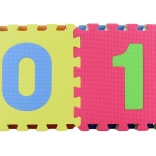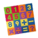 Tappetino in gommapiuma con diverse forme e numeri colorati al centro, che possono essere rimossi e reinseriti come un puzzle. Un ottimo accessorio per i giochi dei vostri bambini e allo stesso tempo serve come protezione dal freddo del pavimento. Dimensioni di una singola tessera circa 30 x 30 x 0,9 cm. Dimensioni della confezione circa 58 x 30 x 6,5 cm. Età 3+