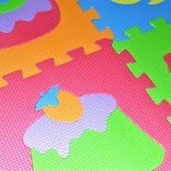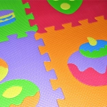 Questo puzzle in schiuma a tema alimenti è ideale come tappeto da gioco per la cameretta. Grazie al materiale morbido è sicuro, piacevole al tatto e facile da mantenere. La superficie zigrinata garantisce maggiore stabilità durante il gioco e riduce al minimo lo scivolamento.