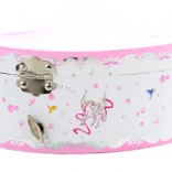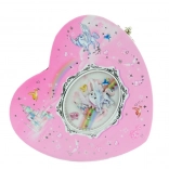 Questa incantevole scatola portagioie musicale a forma di cuore è il luogo ideale per riporre anelli, orecchini e piccoli tesori. Dopo aver girato la chiavetta, parte la melodia e la piccola ballerina inizia a ruotare elegantemente davanti allo specchietto. Il design nei toni del rosa con motivi delicati affascinerà sia i bambini sia gli adulti.