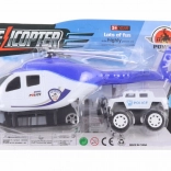 La confezione include un elicottero a retrocarica di circa 31 x 11 cm e una macchinina 9,5 x 5,5 cm a ruote libere, il tutto in plastica. Dimensioni della confezione: 33 x 19 cm. Età 3+.