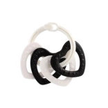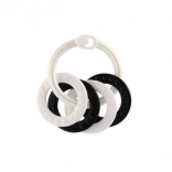 Questo set di anelli in versione bianco e nero è progettato per i più piccoli. I colori a contrasto attirano l’attenzione, aiutano ad allenare la concentrazione e supportano un sano sviluppo della vista. Grazie alle diverse forme e superfici, il bambino allena la motricità fine e la coordinazione mano–occhio.